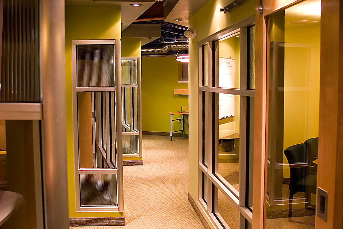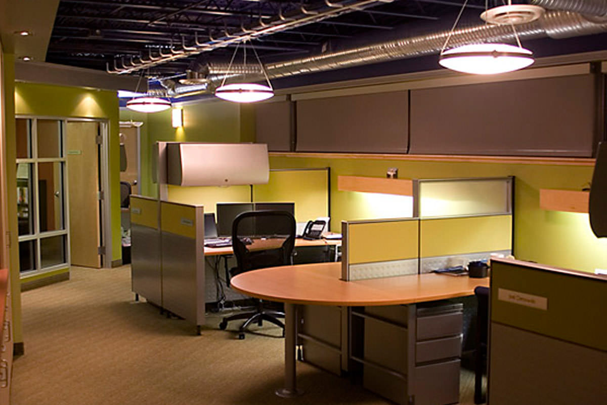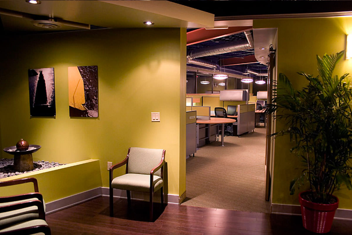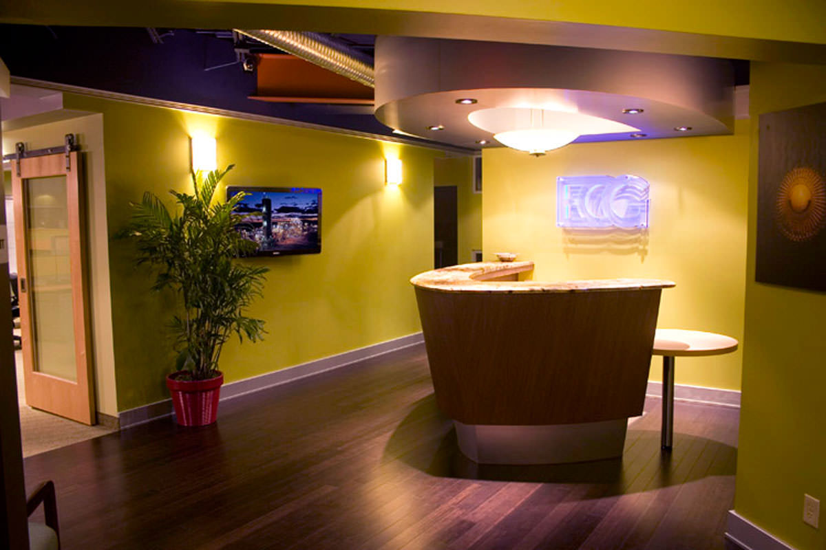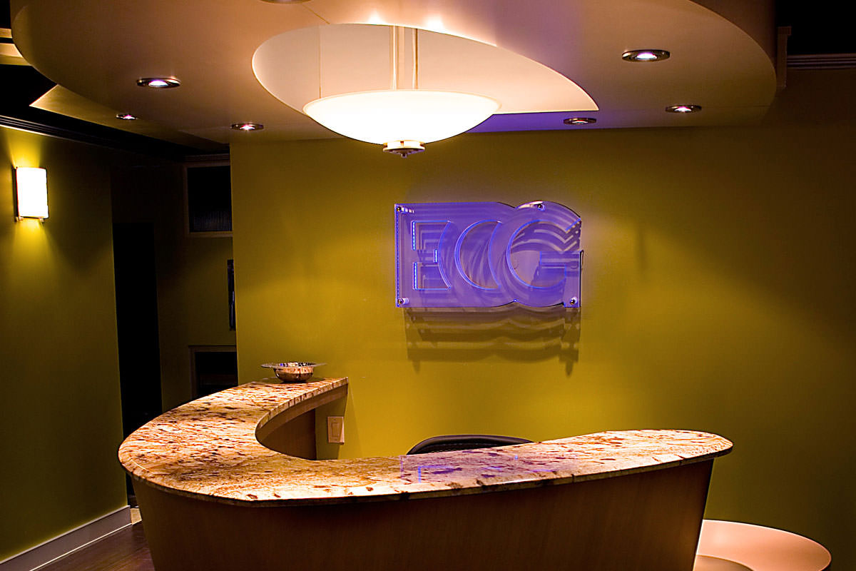 A multi-faceted engineering firm in Fairlawn, Ohio, ECG converted a former real estate office into their corporate headquarters. The project required the removal of all interior partitions to enable the design team to create spaces that suited ECG’s needs. David Hawkins Design Management designed 8500 square feet of space between two floors, blending private spaces with open work areas. The result was a cohesive work environment that portrayed the image that ECG had envisioned. The innovative use of space and finish materials along with dramatic lighting completed the assignment successfully.