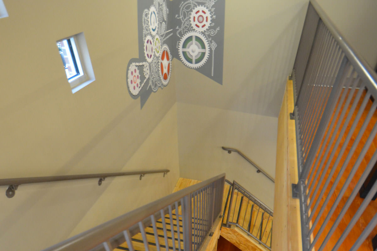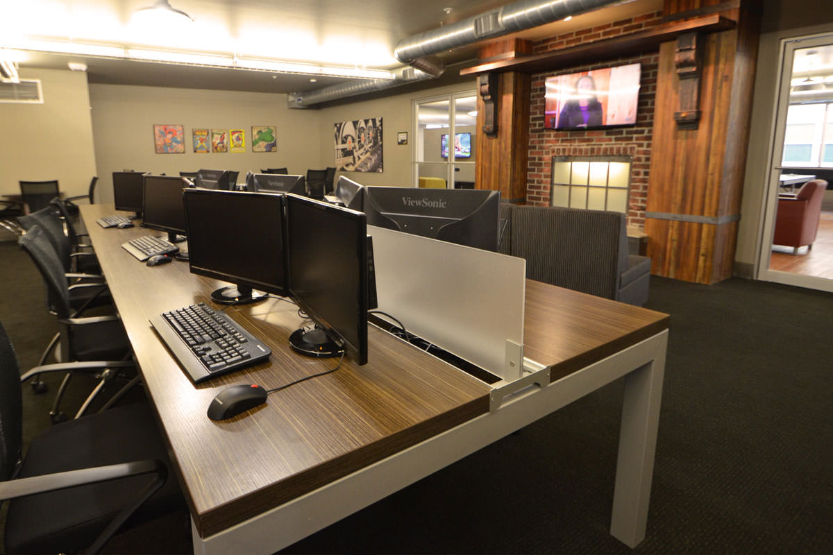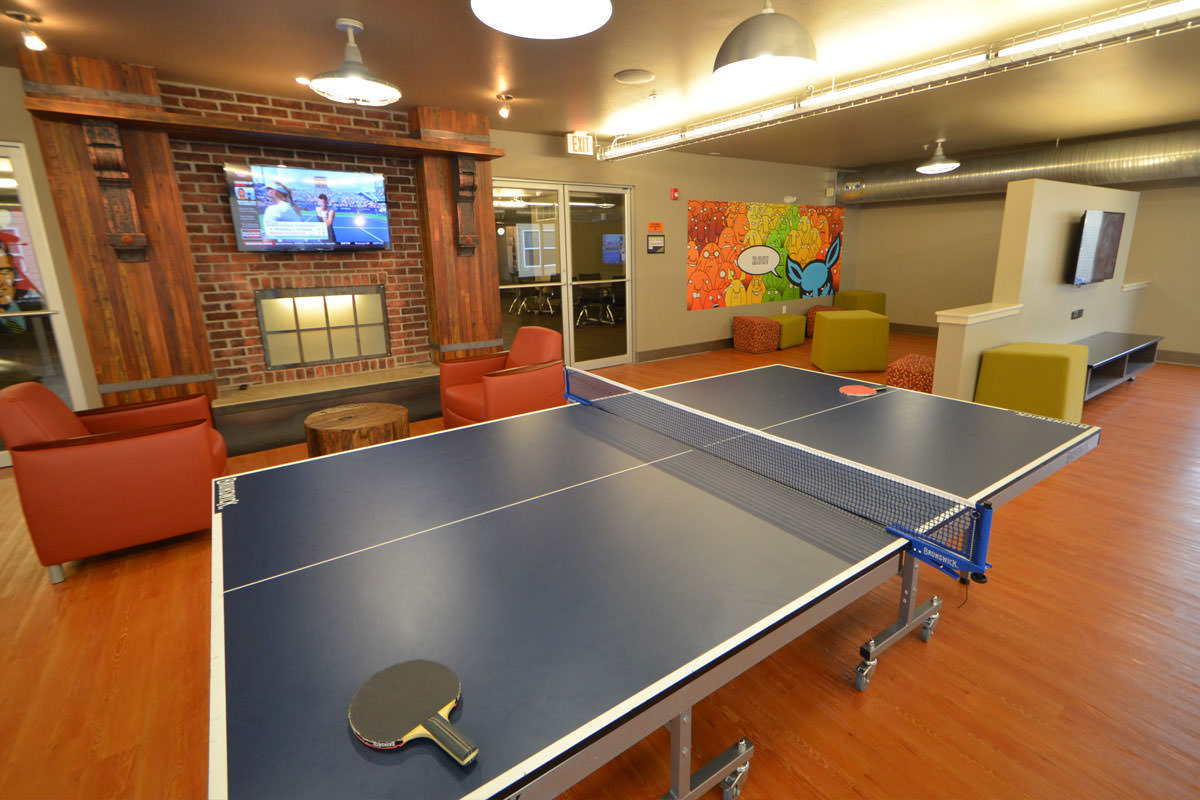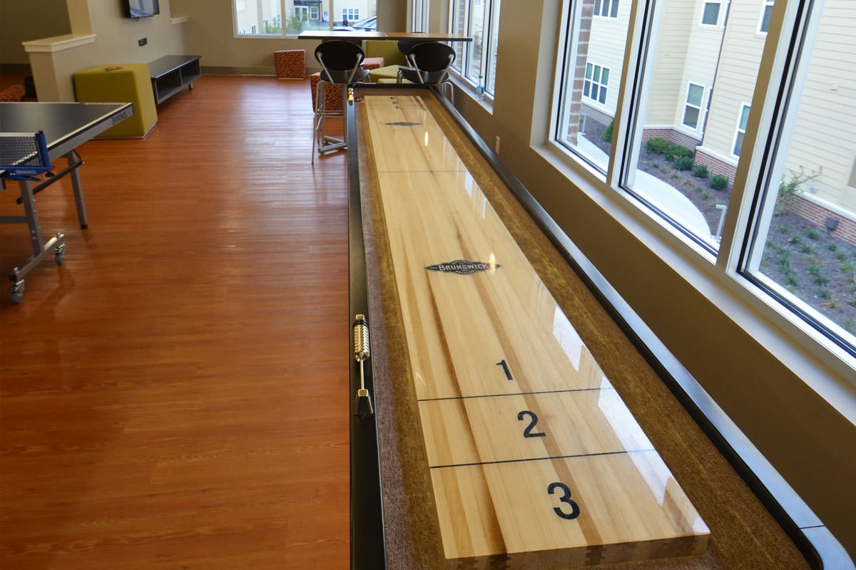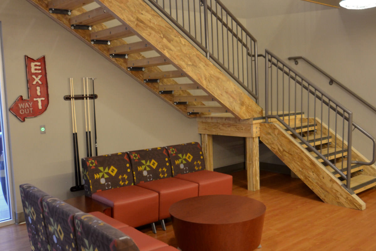 The Depot is Akron's 624-bed, four-story student housing community is on the former site of the Akron Beacon Journal newspaper sorting and storage facility. Historic brackets were saved from the turn of the century building and now frame the fireplace in the game room. The building is reminiscent of the industrial age with reclaimed wooden stairs, indirect lighting in metal raceways and exposed concrete.