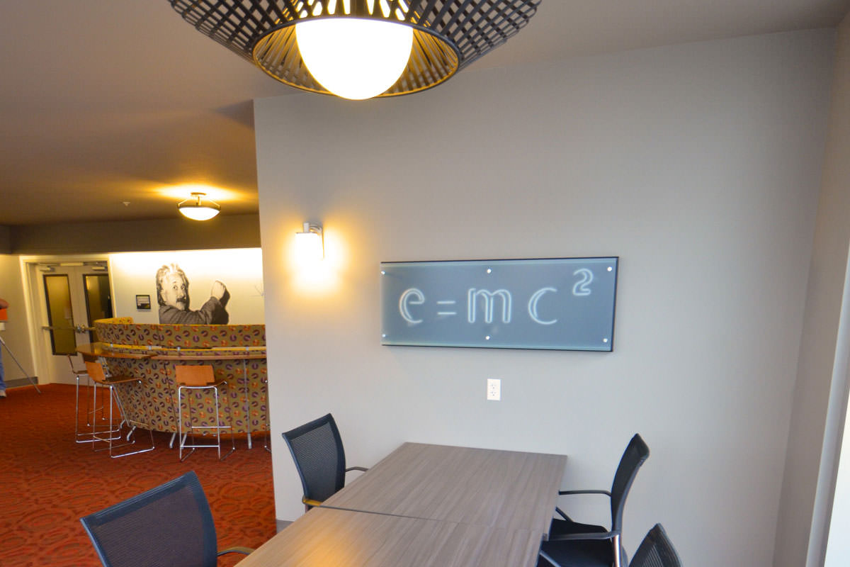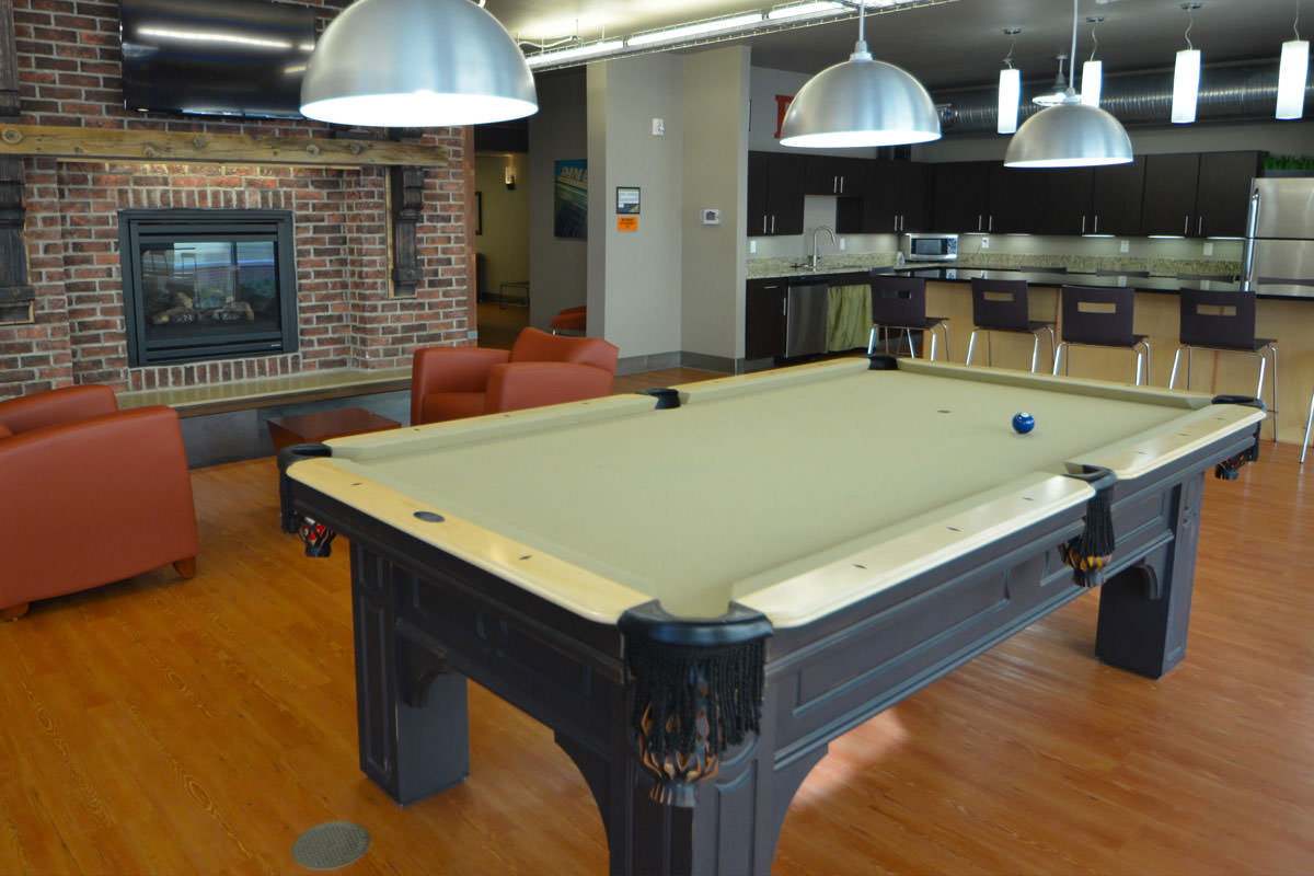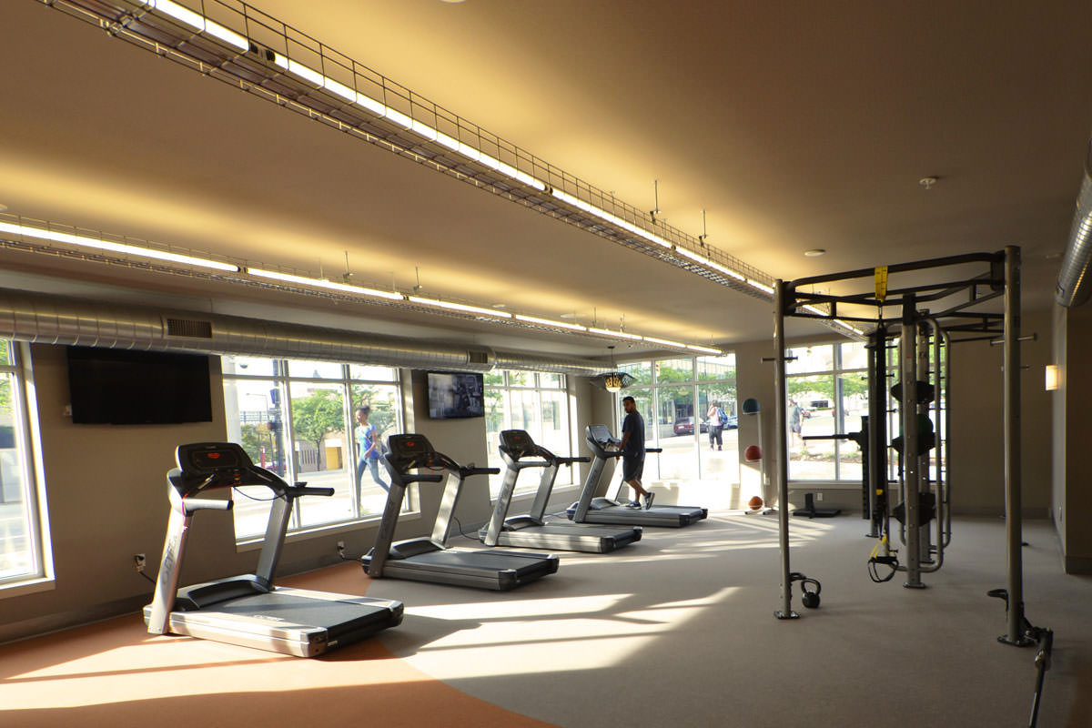 The new building features a resort-style heated pool with an outdoor bar and kitchen, study lounges, on-site concierge, modern clubroom, on-site mini-market, indoor gas fireplace, game room, as well as a large group fitness classroom and state-of-the-art fitness facility.