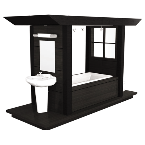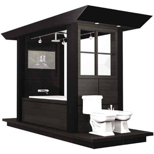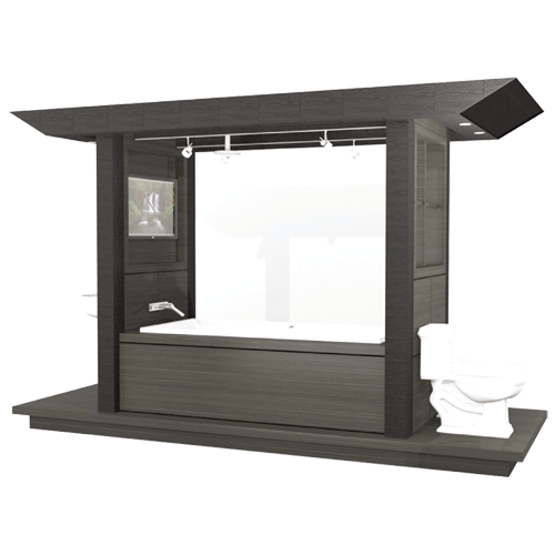 The pagoda suite concept features a tub, shower, vanity and water closet all in one working display.