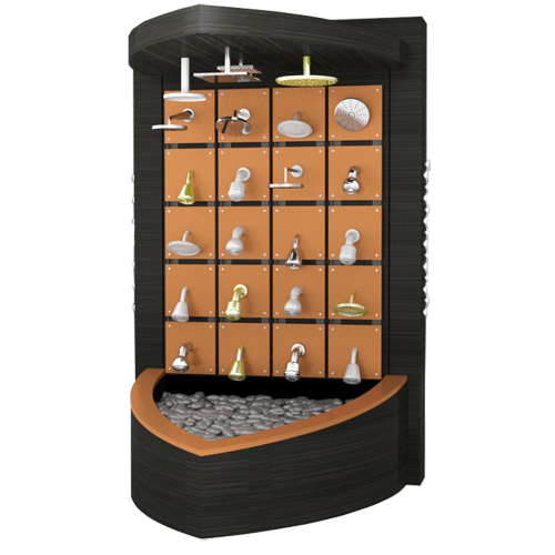 The faucet display maximizes your sales per square foot through product density and takes up only 2' x 4' of floor space.